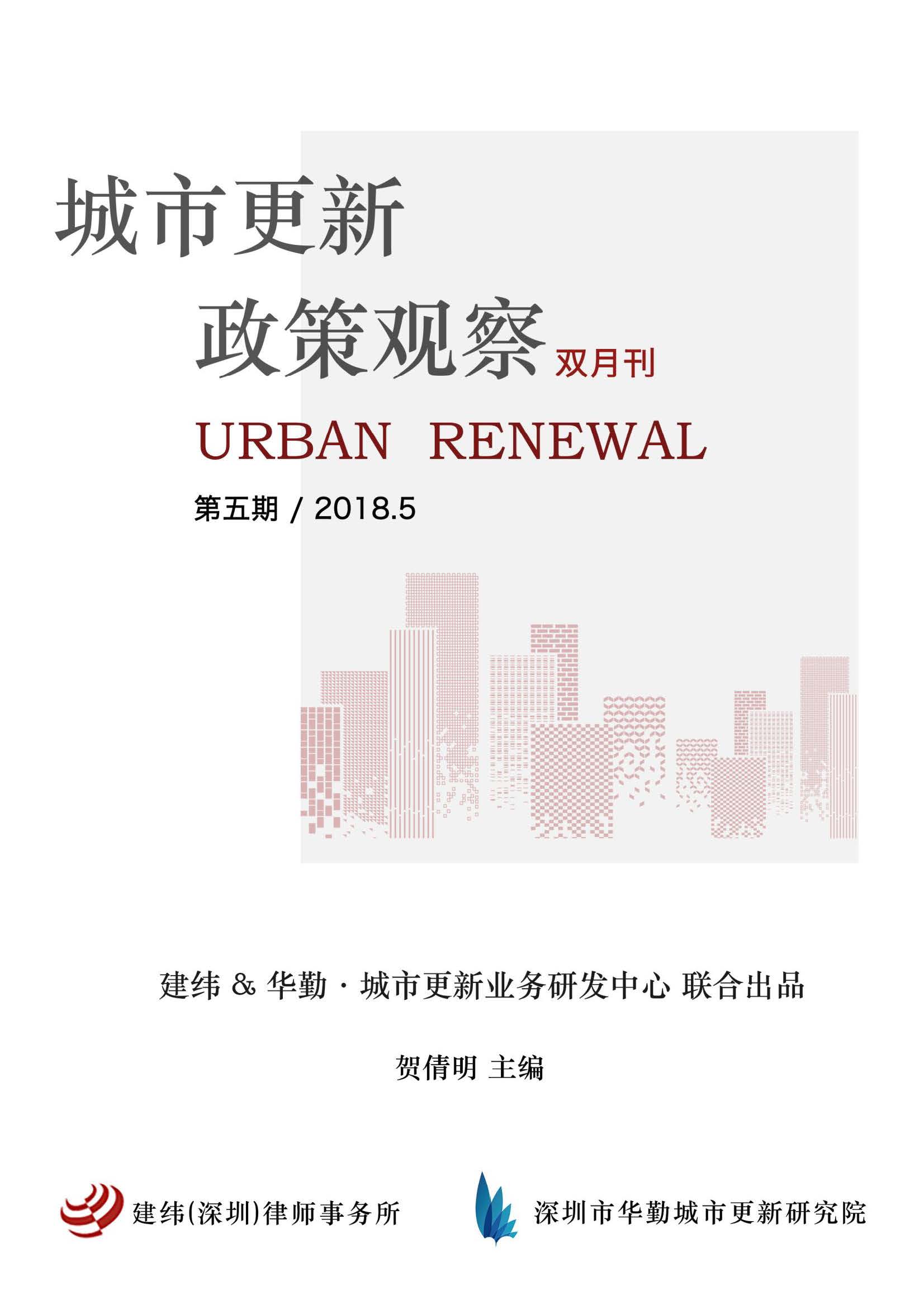 编者:建纬(深圳)律师事务所 出版时间:2018-05-13《城市更新政策观察》由建纬(深圳)律师事务所与深圳市华勤城市更新研究院联合出品,两月一刊,自2017年9月首期推出以来,迄今已更新至第五期。《城市更新政策观察》汇集了粤港澳大湾区城市更新政策资讯、行业观察以及相关行业资讯,致力于为粤港澳大湾区城市更新行业参与者和关注者提供有益的资讯参考。