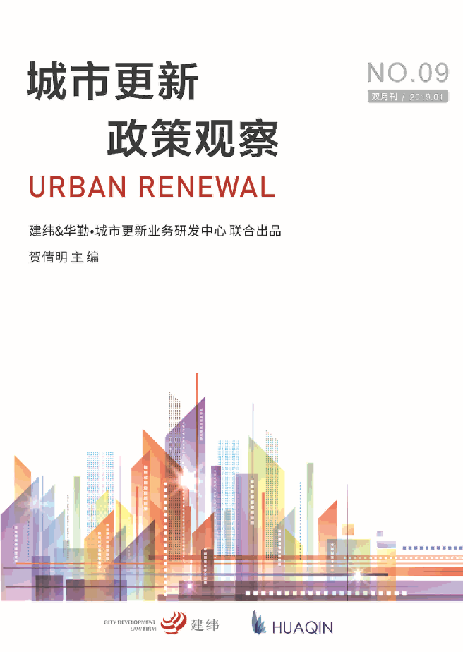 编者:建纬(深圳)律师事务所 出版时间:2019-01-16《城市更新政策观察》由建纬(深圳)律师事务所与深圳市华勤城市更新研究院联合出品,两月一刊,自2017年9月首期推出以来,迄今已更新至第九期。《城市更新政策观察》汇集了粤港澳大湾区城市更新政策资讯、行业观察以及相关行业资讯,致力于为粤港澳大湾区城市更新行业参与者和关注者提供有益的资讯参考。