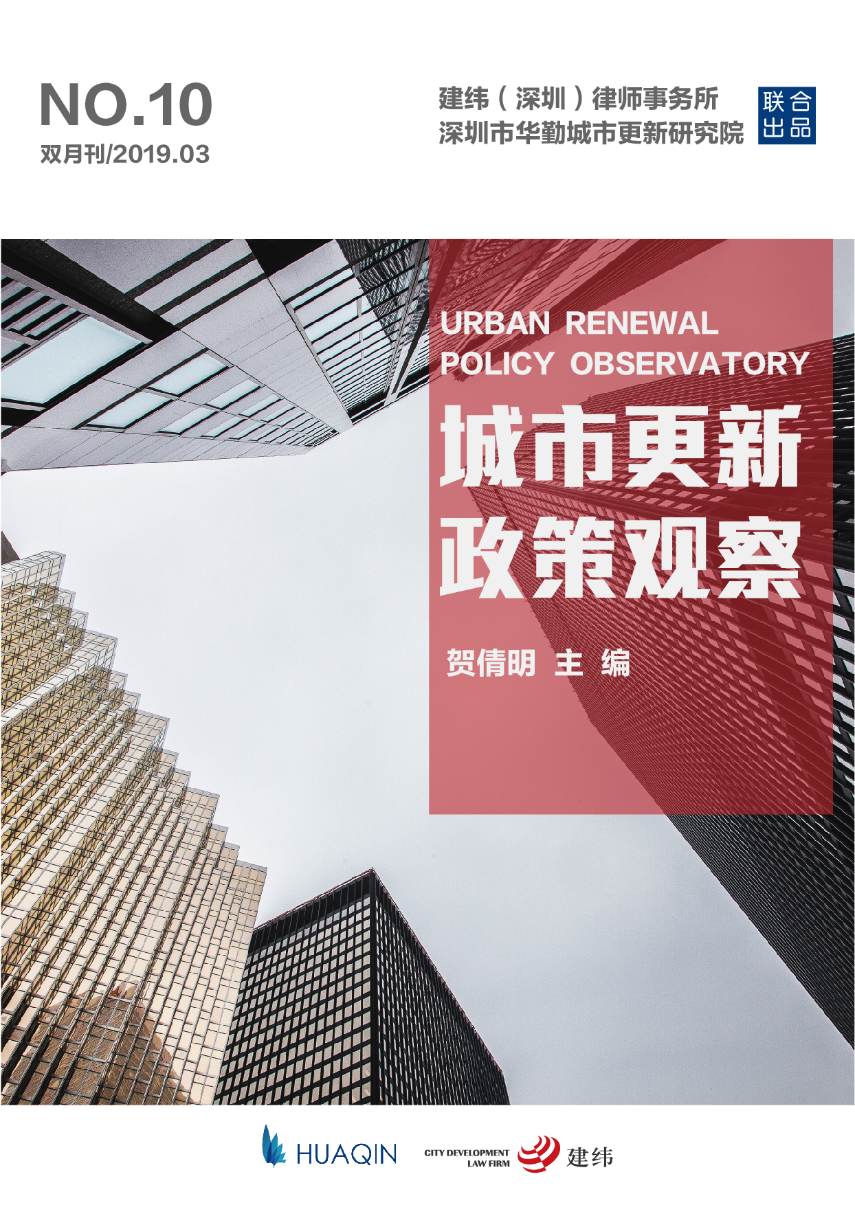 编者:建纬(深圳)律师事务所 出版时间:2019-03-13《城市更新政策观察》由建纬(深圳)律师事务所与深圳市华勤城市更新研究院联合出品,两月一刊,自2017年9月首期推出以来,迄今已更新至第十期。《城市更新政策观察》汇集了粤港澳大湾区城市更新政策资讯、行业观察以及相关行业资讯,致力于为粤港澳大湾区城市更新行业参与者和关注者提供有益的资讯参考。
