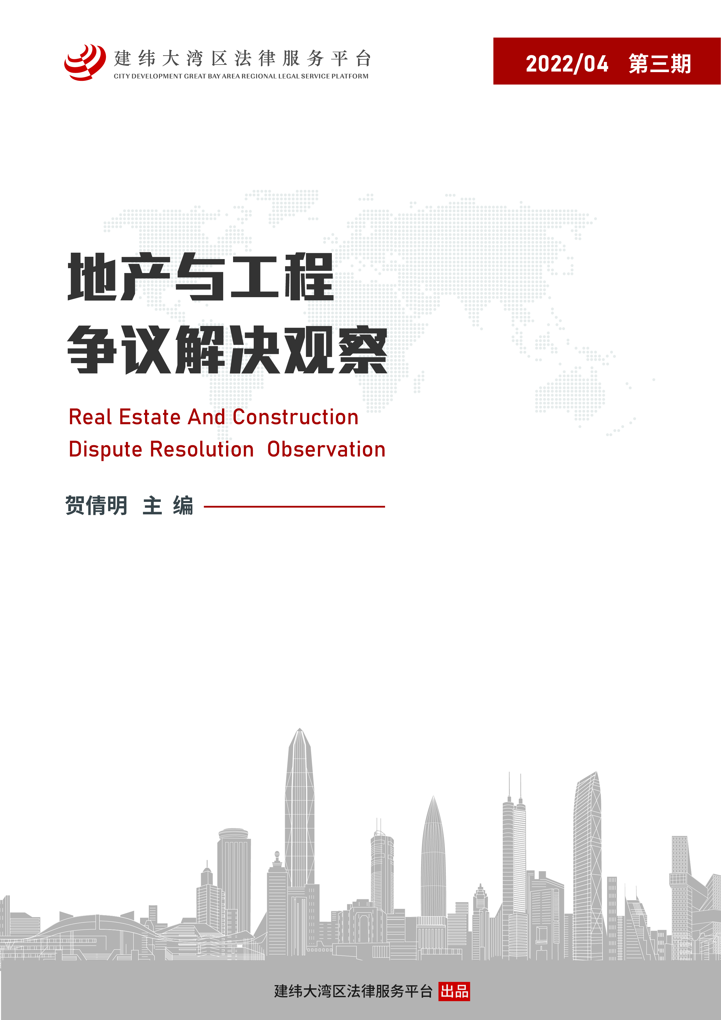 编者:建纬大湾区法律服务平台 出版时间:2022-03-07《地产与工程争议解决观察》由建纬大湾区法律服务平台出品,每月发布一期,每期包含法律适用、典型案例、热点事件及实务处理四个部分,年末发布年度合集。本观察聚焦大湾区地产与工程领域纠纷争议解决及破产与重整,关注国家及大湾区层面法律法规及司法文件规定,展示争议解决及破产与重整最新立法,并对最高院及大湾区主要法院最新发布的地产与工程纠纷案件进行筛选、归纳和提炼,探索司法实务前沿审判问题,同时跟踪关注社会热点纠纷事件,传播行业动向,了解行业痛点,并发布相关实务文章,分享实务经验,为解决地产与工程行业痛点提供解决思路。