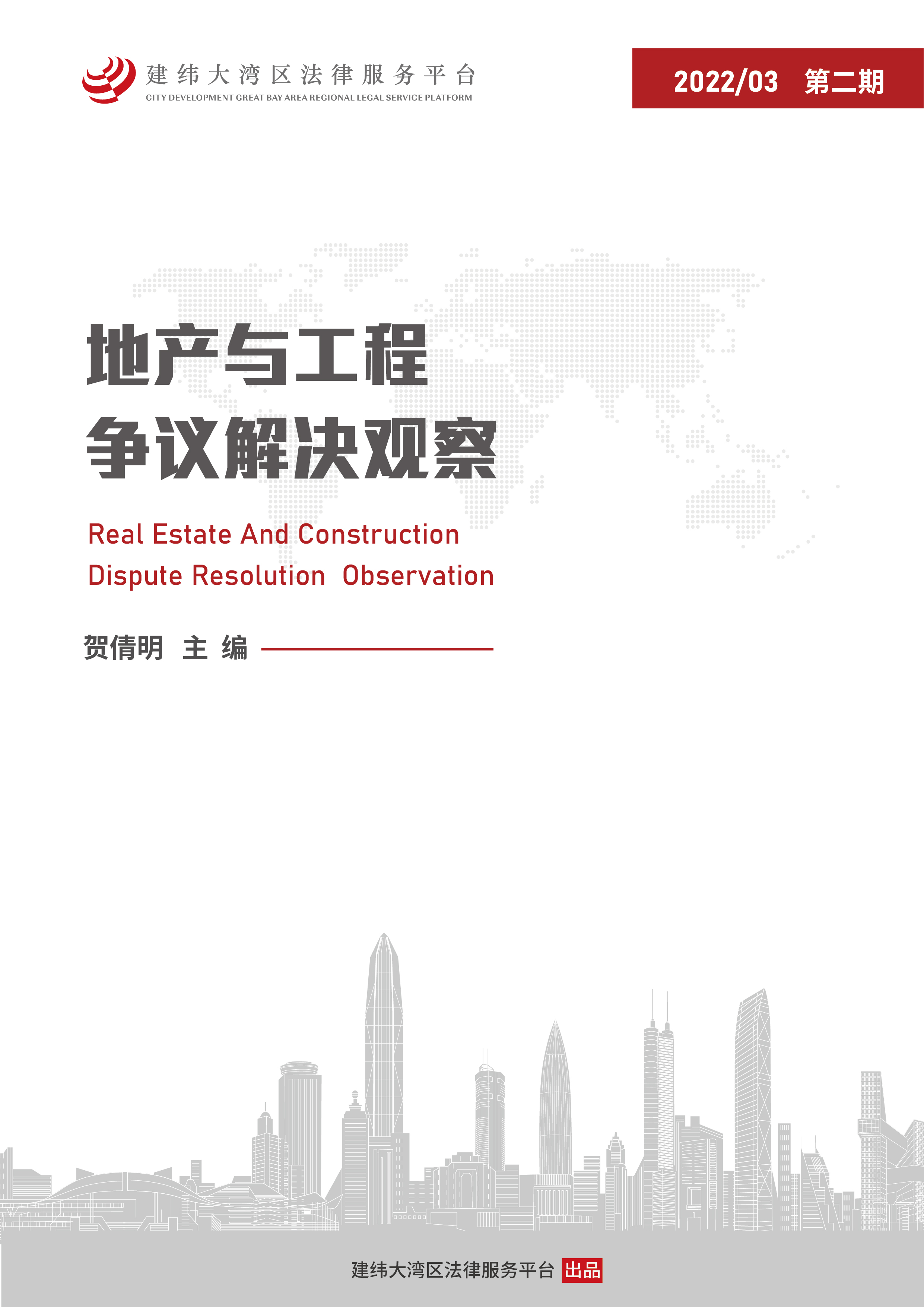 编者:建纬大湾区法律服务平台 出版时间:2022-04-08《地产与工程争议解决观察》由建纬大湾区法律服务平台出品,每月发布一期,每期包含法律适用、典型案例、热点事件及实务处理四个部分,年末发布年度合集。本观察聚焦大湾区地产与工程领域纠纷争议解决及破产与重整,关注国家及大湾区层面法律法规及司法文件规定,展示争议解决及破产与重整最新立法,并对最高院及大湾区主要法院最新发布的地产与工程纠纷案件进行筛选、归纳和提炼,探索司法实务前沿审判问题,同时跟踪关注社会热点纠纷事件,传播行业动向,了解行业痛点,并发布相关实务文章,分享实务经验,为解决地产与工程行业痛点提供解决思路。